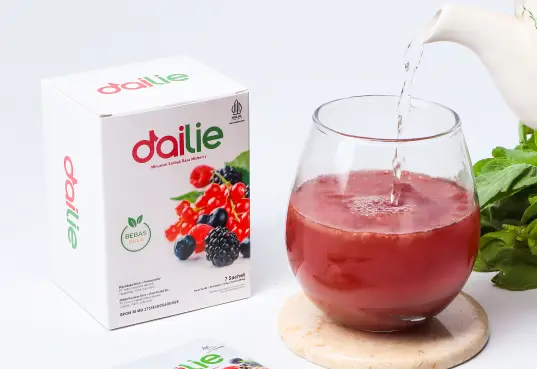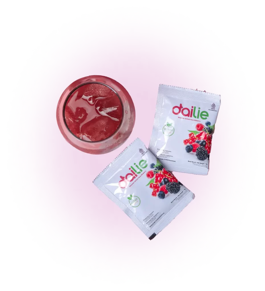 Dailie 3 in 1 – Detox, Antioxidant and Immune Booster Fiber. Mengandung psyllium husk, extract mix berry, inulin, red beet, ascorbic acid, guarana, spinach powder serta mix fruit and vegetable.